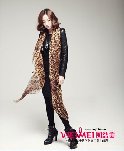 说到丝巾怎能少了充满野性魅力的豹纹花样,黑色亮皮夹克搭上同色打底裤整体看上去很性感强势,豹纹丝巾材质轻柔花样十分性感,颜色也很正,这样的搭配组合在一起,你一定会散发十足的性感魅力