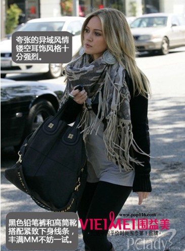 从小就是童星的Hilary Duff,并没有受成名过早的摧残,一直作为优质偶像出现在公众的目光之下,身材稍显丰满的她并没有一味追求潮流或是出格装扮,而是很清楚自己的身材缺陷,从而尽可能最大的弥补。让编辑带你学习如何用大围巾搭出显瘦装扮的吧!