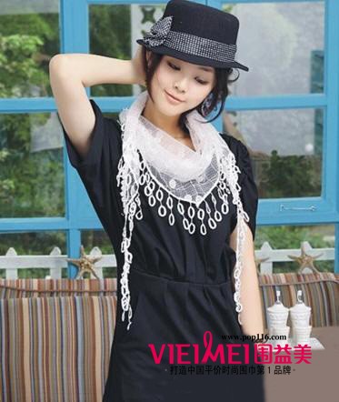 小编点评:这款白色三角巾非常漂亮,赋予了女性的万种风情,如图中MM所示,搭配黑色的裙装,非常优雅。