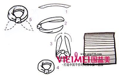 5.围巾结:利用系领巾的基础围巾结之后,再多一个步骤,就是另一种变化。