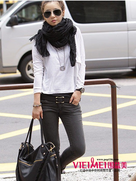 空调房纯色皱褶丝巾,简单休闲,有梦幻的蓝色,炫酷的黑色,搭配纯色系的T恤很有街头风范。