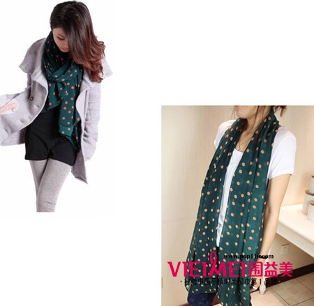 波点元素一直是时尚界不退流行的风向标,大大的波点图案的注入让丝巾多了几分俏皮与可爱