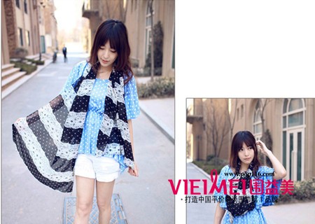 雪纺材质,透气舒适。丝巾可塑性很强,不仅可以围成小蝴蝶结的效果,还能作为飘逸的小披肩哦,一物两用,绝对是不容错过的单品呀!