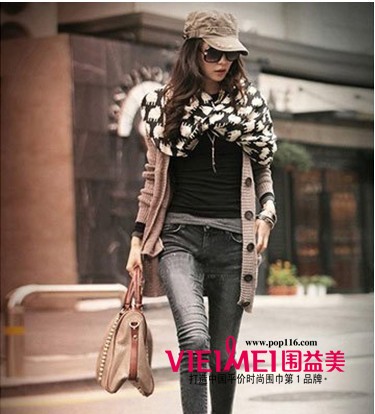 潮流要点:大围巾是今季的流行重点,今季选择围巾宁大勿小。
