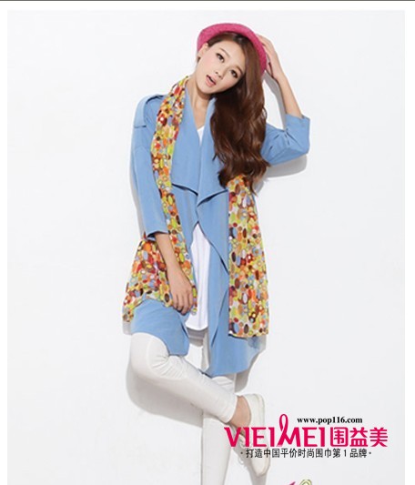 五彩波点雪纺围巾+雪纺长款风衣