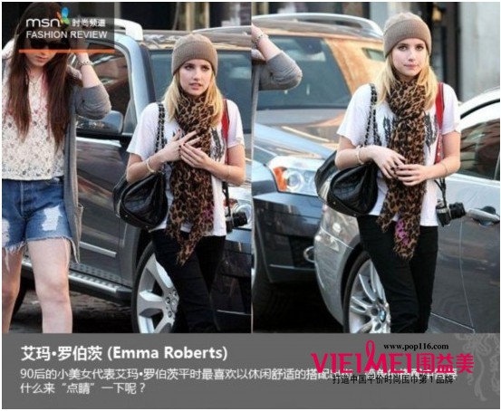 了解流行趋势的资深报友会了解到,灰色最近成为了明星们的热宠颜色哦,希拉里·达芙(Hilary Duff) 的暗灰色几何印花围巾,轻薄的面料系成了围脖形状,与她的可爱气质很对味儿哦。