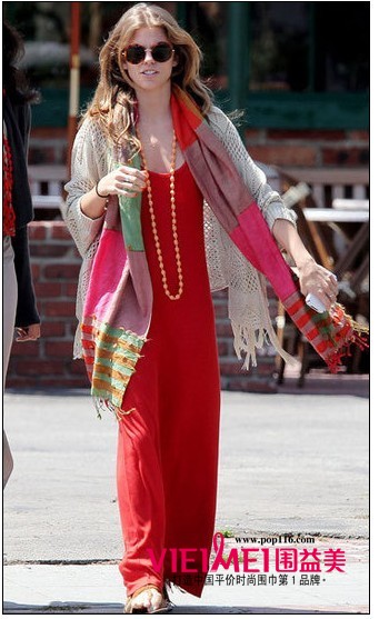 安娜琳恩-麦考德西瓜红长裙+格纹披肩浓浓夏日情,友人豹纹围巾相呼应各种养眼。豹纹服饰起源欧美,欧美风向来奢华。而今季豹纹服饰以优质的仿真技术与现代工艺的完美结合,尽显东方时装的雍容大度、衿贵永恒的时尚气质。豹纹是最挑战女人身材的一种花色。小面积的运用如配饰、鞋、帽、短裙等有时可以起到点缀效果。