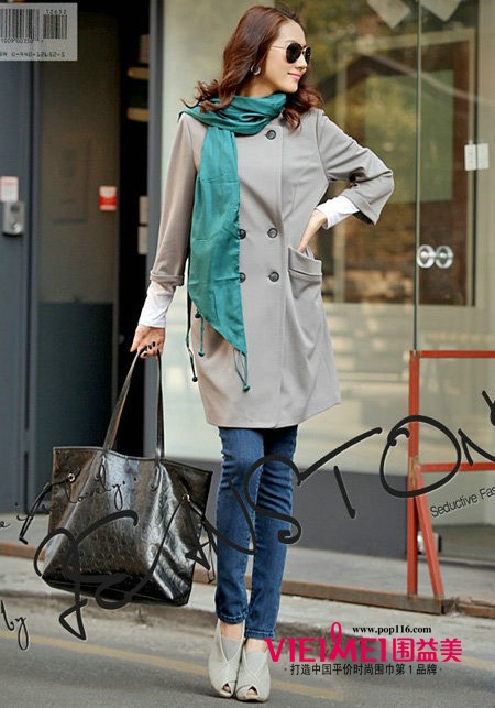 纯色款围巾,特别好搭配衣服,秋季里绝对是抢眼的装扮,简单随意的穗子,尽显甜美淑女形象。秋季值得拥有的配饰