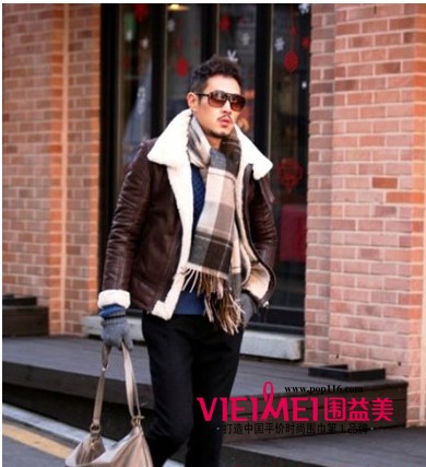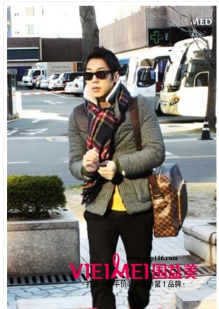 男士们的冬装外套一般 颜色都比较单一,可以搭配一条格子围巾中和外套的单调感,也增加了整体的层次感。