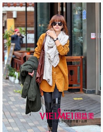 橘黄色的长款衬衫与米色的围巾搭配,穿出随意慵懒的风格。宽松的上衣与铅笔裤的搭配更衬托出双腿的纤瘦笔直,外搭一件非常流行的军绿色外套,亮丽的橘色让沉闷的冬季服饰显得不那么暗淡,戴上墨镜,更加有范儿,让女生展露出个性有型的感觉。休闲风格的时尚潮搭十分适合作为假日的出游搭配,大家可以作为参考。