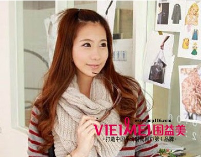 2012这样的造型看起来是不是很暖和呢?中分的长卷发柔和而甜美,发色也是暖色系,粉色的围巾随意绕在脖子上很随意也很自然,将卷发与围巾结合在一起更显甜美气质哟,耳套看起来也很暖和哟