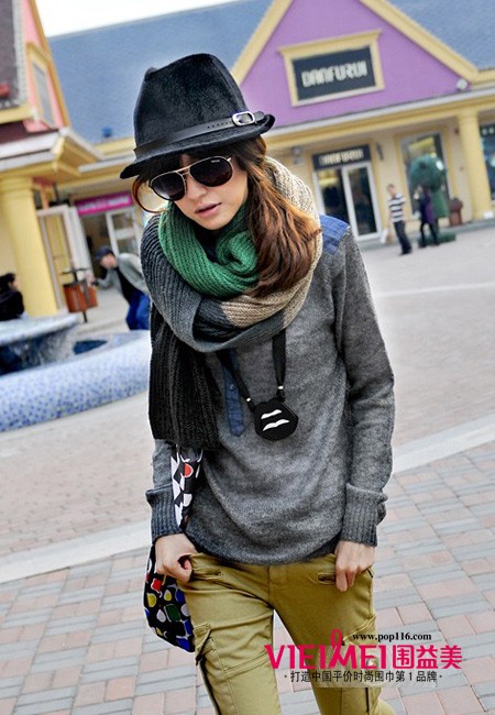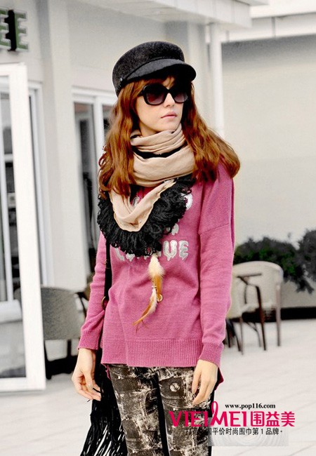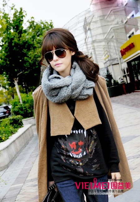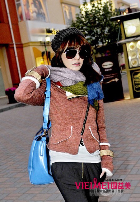 围巾多年活跃在街头,每年的新花样层出不穷,今年清新娇俏感觉是大热的元素之一,vintage感的带球球的围巾势必成为最抢眼的单品,打造日系娇俏甜美少女造型不再是难事。柔软舒适的质地,单面拼色绒毛让它更加的暖和,搭在清爽的蓝色条纹感针织衫上,或是天气更冷的时候,搭在优雅感深灰色英伦经典牛角扣绒毛连帽外套上,颜色上的对撞以及同样的可爱绒毛材质,都能让你变身萌系娇俏可爱少女喔。