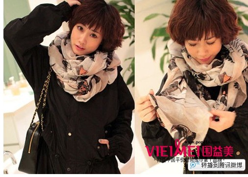 雪纺柔软温暖的感觉!是可以从秋天用到冬天的款式!纯色流苏加入添加一些贴搭的层次感和细节感!最经典的四种花纹图案!很别致呢!可以搭的简单随意些,也可以搭配得俏皮可爱,为穿着增加了很多DIY的趣味吧。