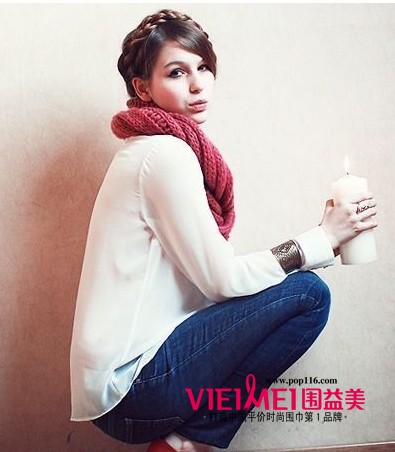 点评:今年超级流行这种三角式的围巾,卷发的MM很适合配到这个款,这种围巾设计非常贴心,和深色系或是白色的服装搭配起来,它绝对可以起到画龙点睛的作用!