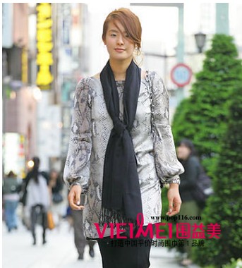 动物纹的连衣裙、漆皮马赛克式链条包不免有些正式,加入长围巾的搭配方式增加休闲气息,增加置身街头的随性感