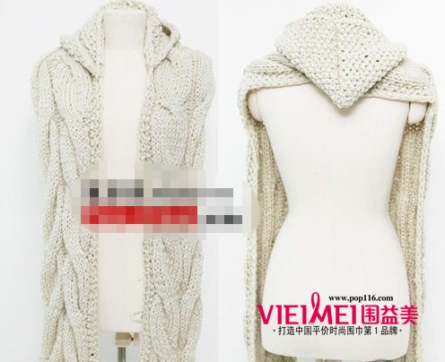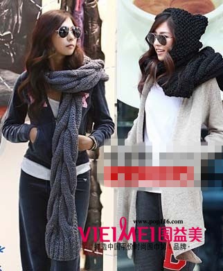 连帽的围巾在韩国可是非常有人气的哦。大胆独特的设计非常有创意。平日里你可以将它随意搭在衣服上,伴随你的步伐摇曳在胸前,为沉闷的冬季增加活力,大风天可拉起帽子,既方便又时尚。