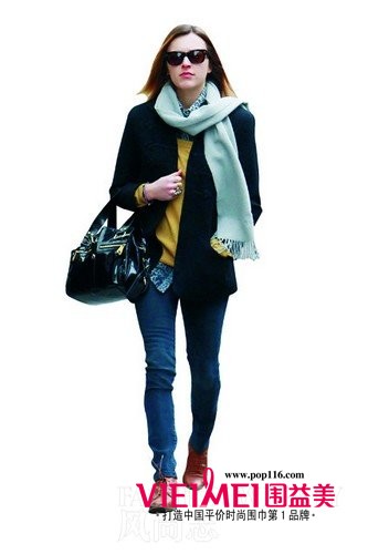 人人都要有一条动物纹大围巾,素色大围巾要选精致的灰,2011年围巾最好的伴侣是黑超,太阳镜线条越硬越时髦。
