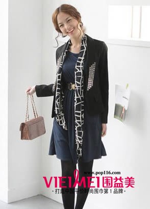 黑白抽象几何裂纹图案的丝巾成为主管级OL的人气之选,简约不张扬的图案为低调暗色系服装适当提亮。宝蓝色连衣裙搭配金属扣装饰的腰带,凸显优雅腰身。高腰修身小西装外套增加职业感和威信度。拥有亮钻装饰的款式非常适合晚间客户派对!