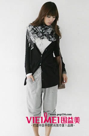 去年人气十足的黑白骷髅丝巾今年热力虽然有所下降,但百搭的配色和款式依然成为OL们黑白通勤装的最安全“拍档”。妩媚的丝巾为低调干练的装扮增加女人味。长款衬衫搭配黑色长针织毛衣,带有网格的黑色Legging凸显时尚品味。