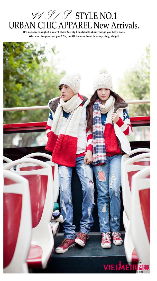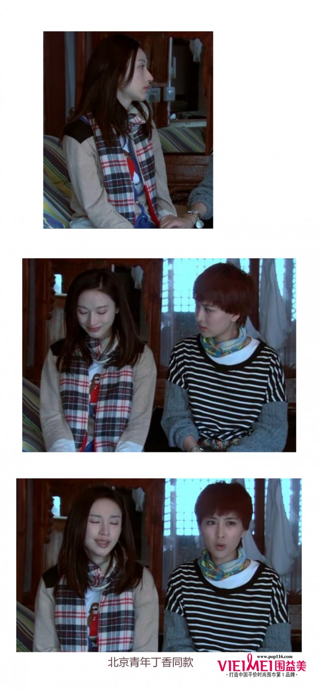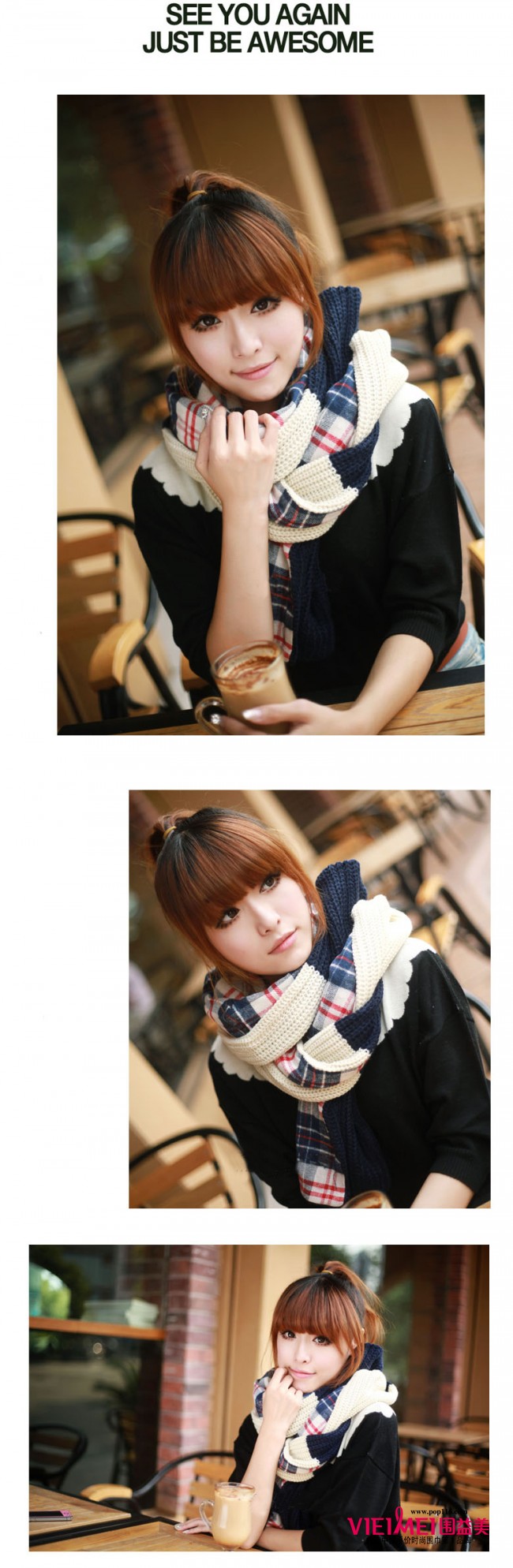 斜角戴的时候,围巾会长更多,就像下图这样子