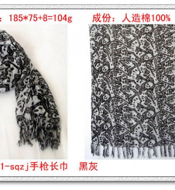 简约大方骷髅头印花搓须长款围巾,时尚百搭款,四季皆宜。物美价廉。尺寸:185*75+15cm。 100%人造棉,手感舒适,质量高端。