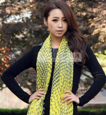 斜纹方块拆须长围巾 黄
