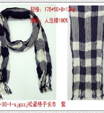 松紧格子长围巾 紫色