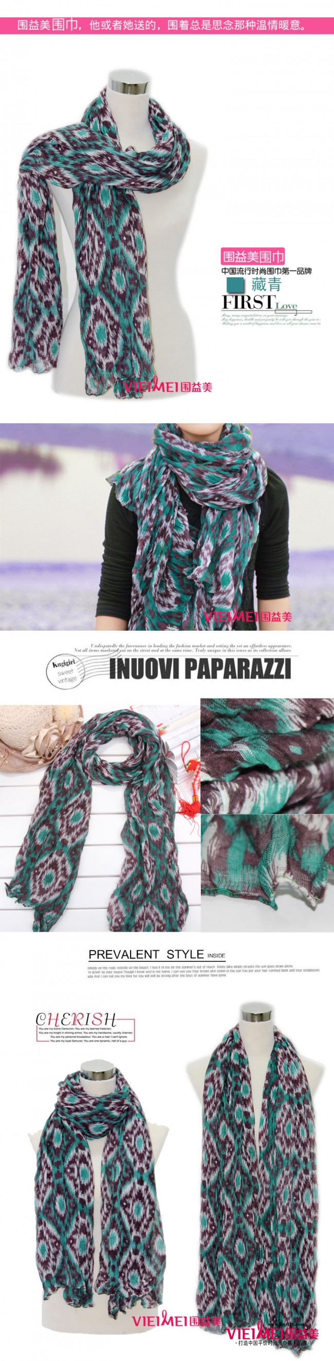 有想象力的MM可以把它当头巾或者扎在大包上,是很有异域色彩的单品。