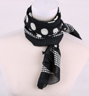雪纺大圆点长巾 黑印白