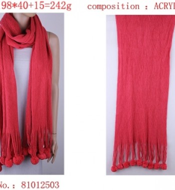 纯色毛球长围巾 玫红色