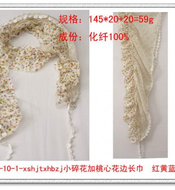 小碎花加桃心花边长围巾 红黄蓝