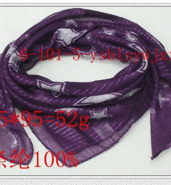 银丝巴里纱印五角星方巾 紫色印白