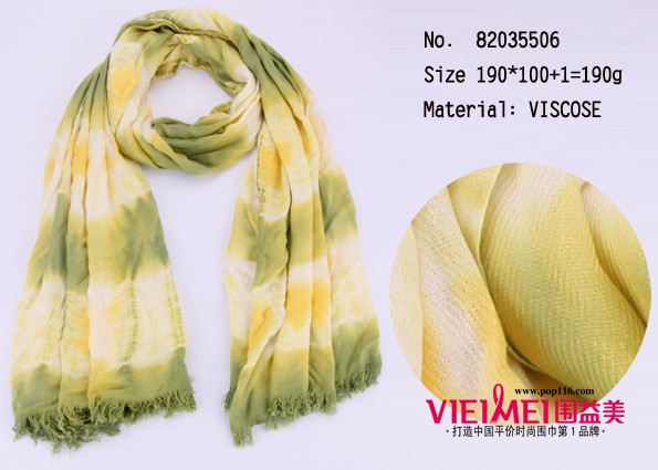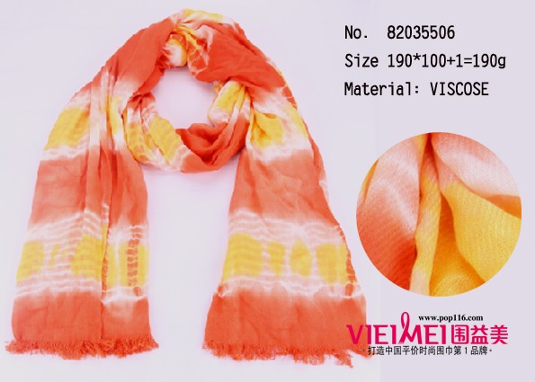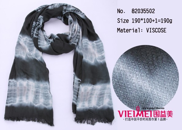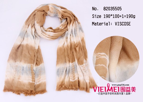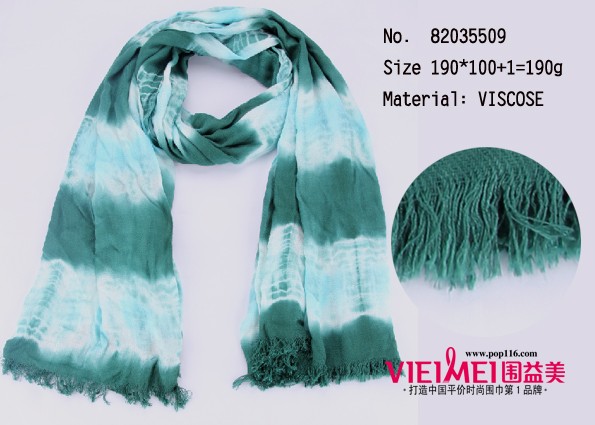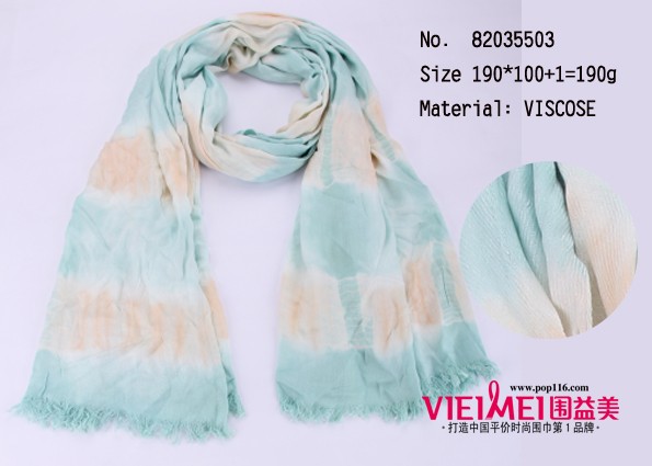 围益美围巾批发 淡蓝彩色扎染拆须长围巾 淡蓝