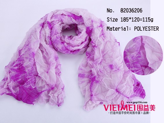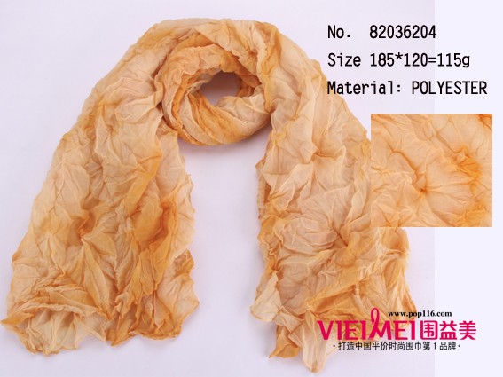 围益美围巾批发 桔黄褶皱扎染长围巾 桔黄