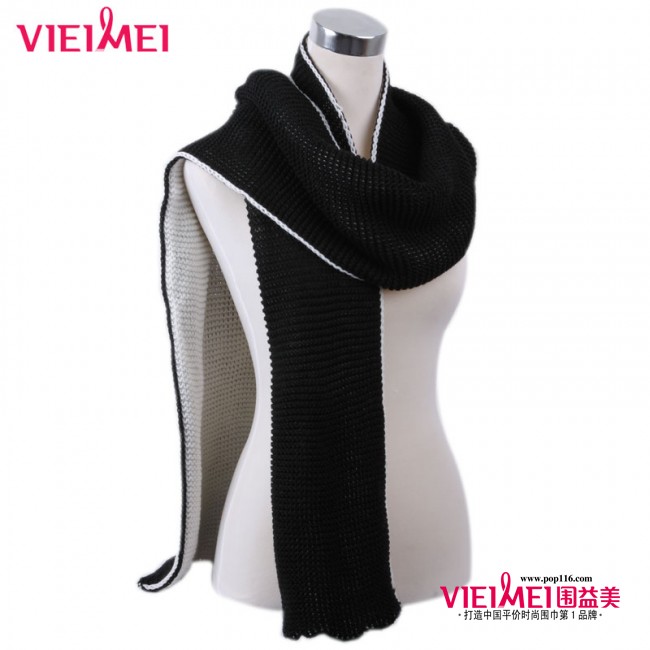 花边平板毛线长围巾 白色