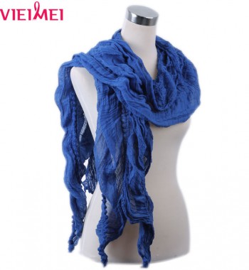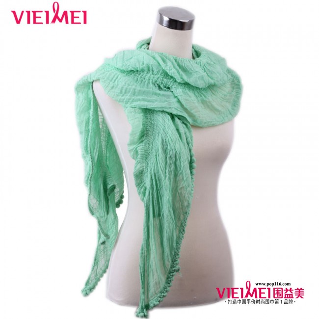 单色毛球长围巾 蓝