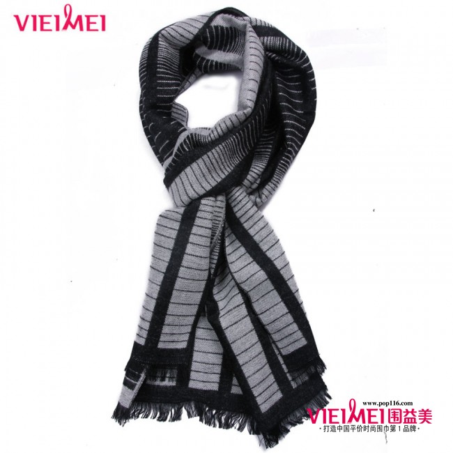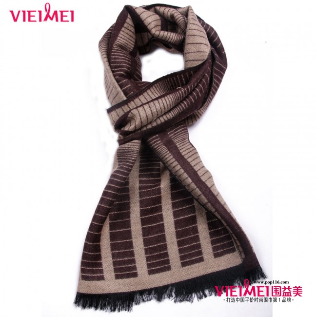 深色的条纹围巾 成熟的风范 |